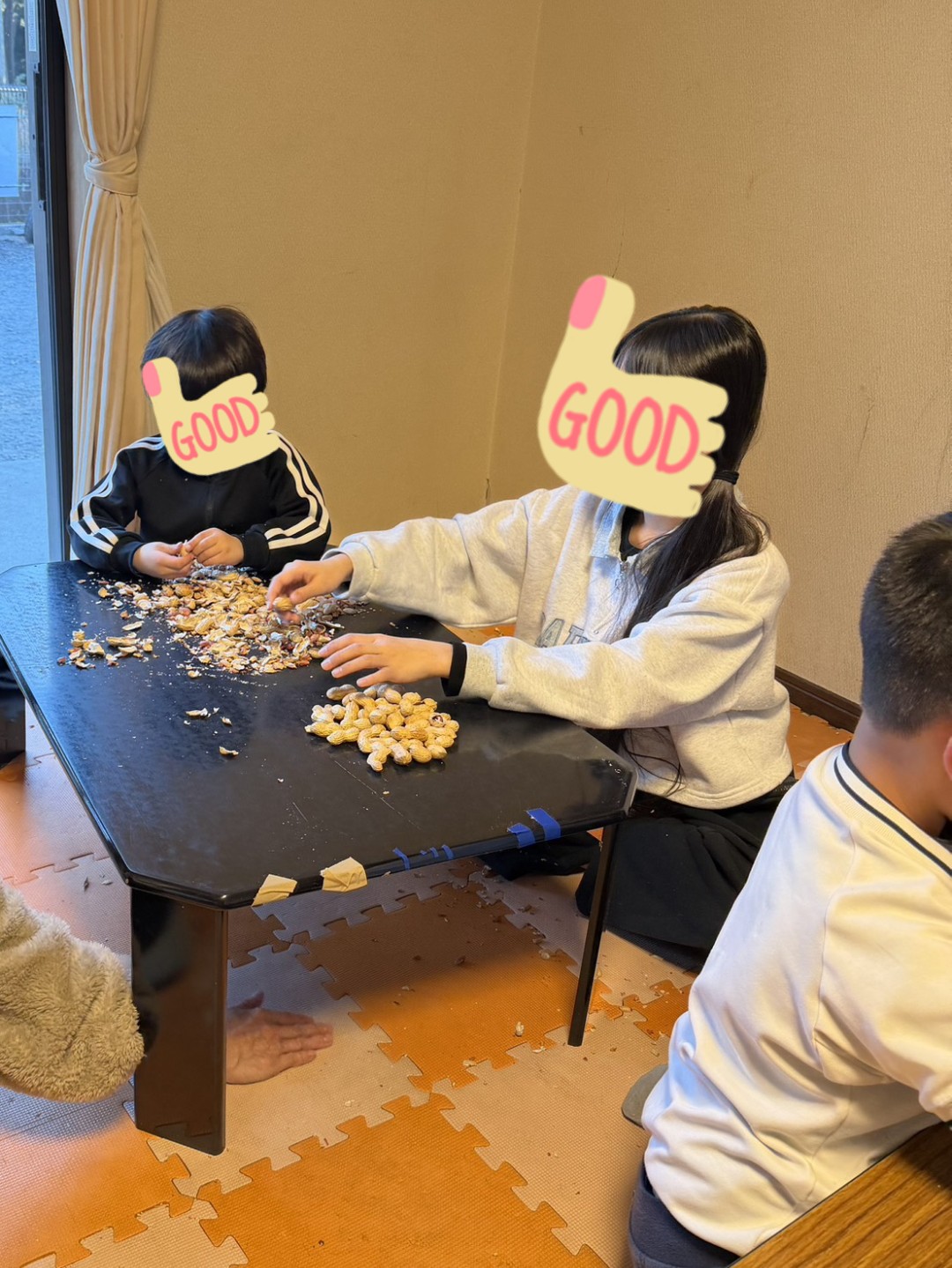 豆まきのあとはみんなで仲良くおやつ落花生🥜ヾ(o´∀`o)ノワァーィ🎶