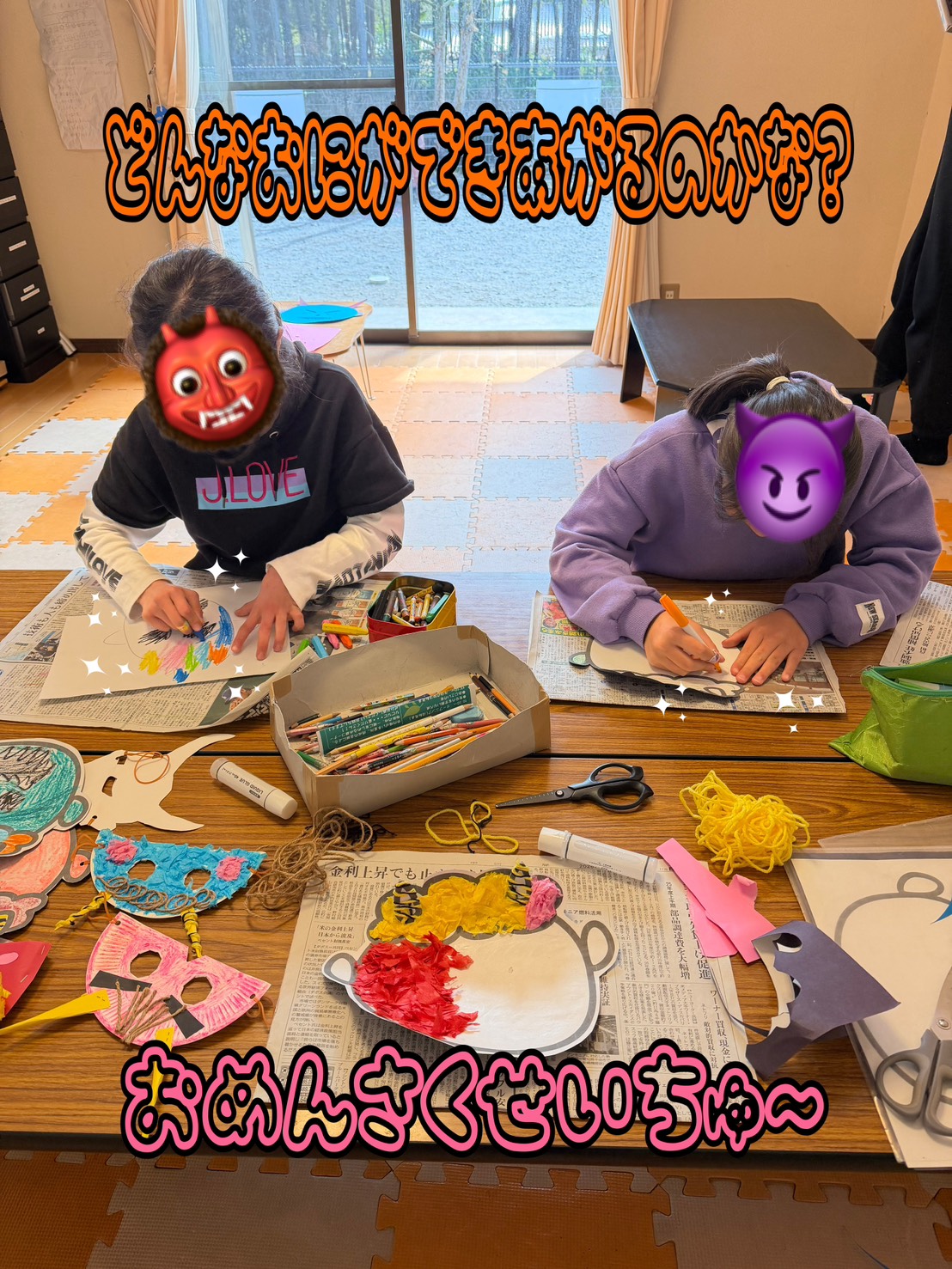 節分イベントを盛大に楽しもう~🎵 と、節分の前週に👹のお面を制作しました🤩