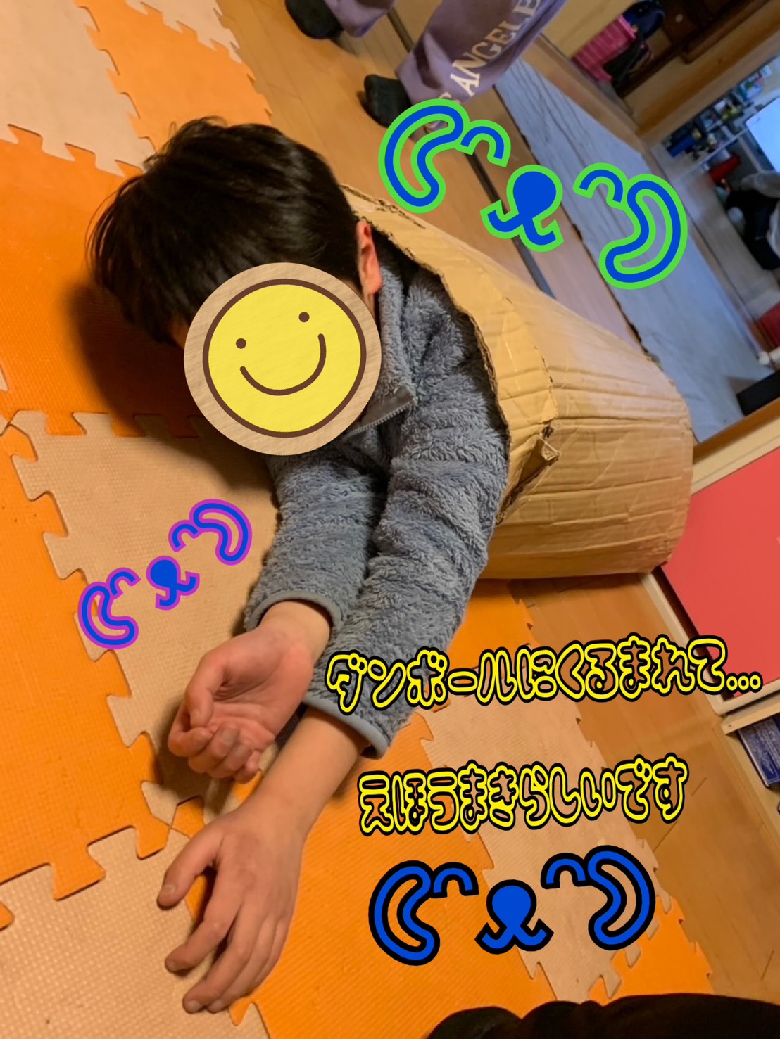 丸めて置いてあった段ボールを体に巻き付け、満面の笑みで「恵方巻きー😊」と突然現れた子のなんと可愛いこと(⋈◍>◡<◍)💖