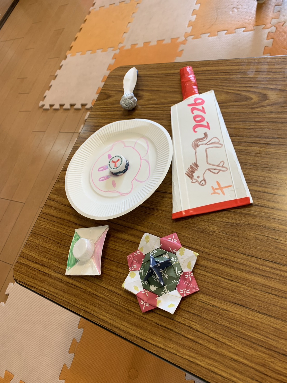 コマ、福笑い、羽子板作りをみんなでチャレンジ💪✨